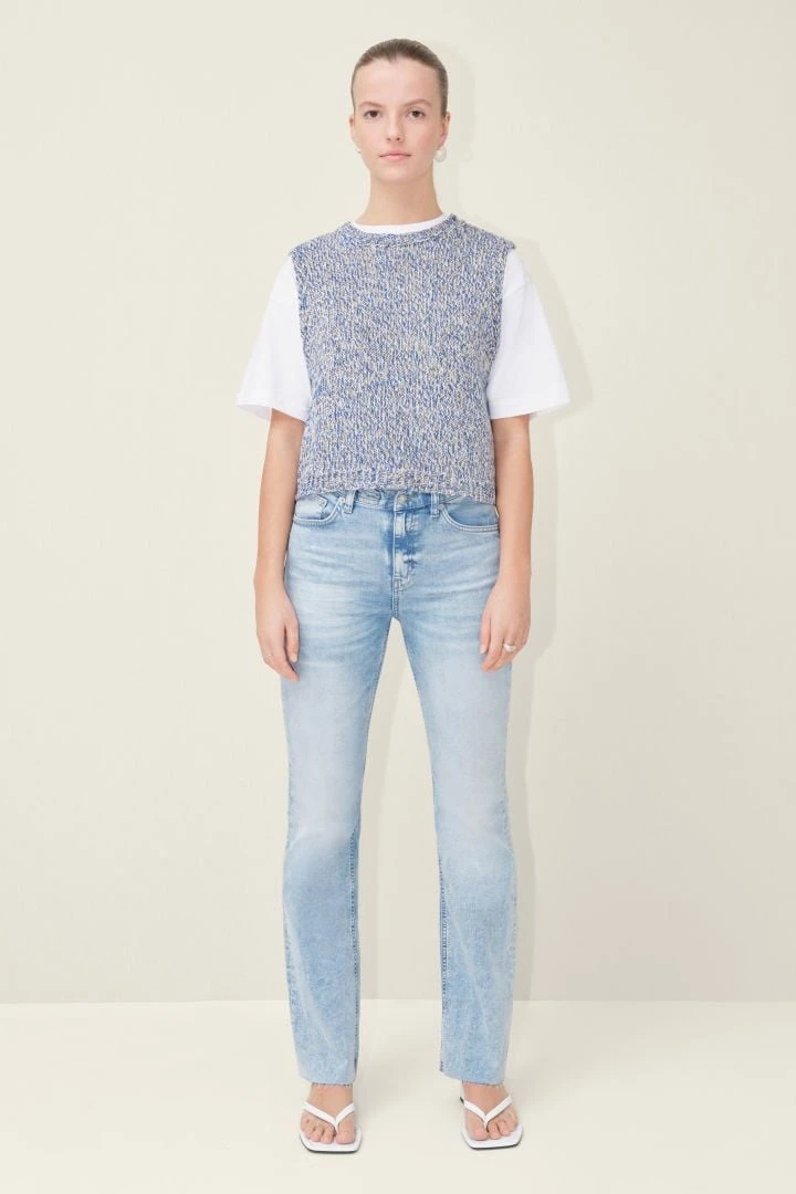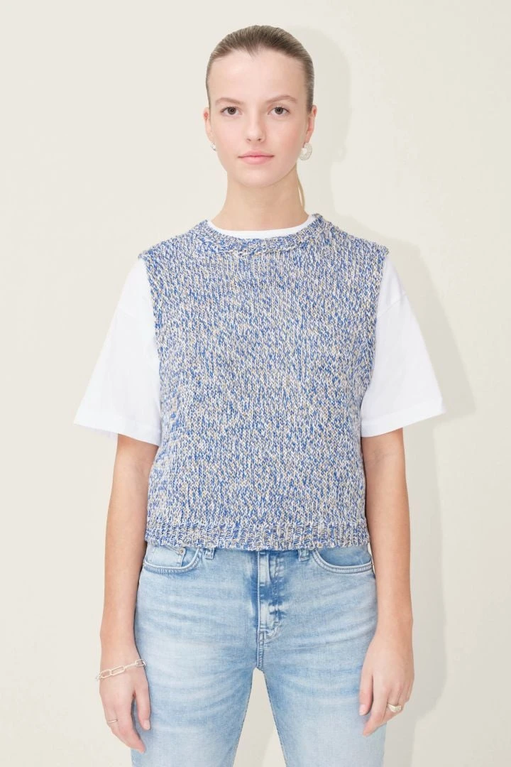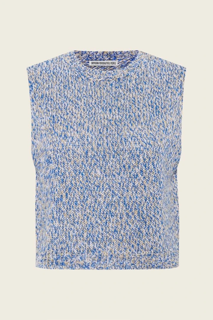 BERULA ist ein modisches ärmelloses Stricktop mit angedeutetem Turtle Neck.