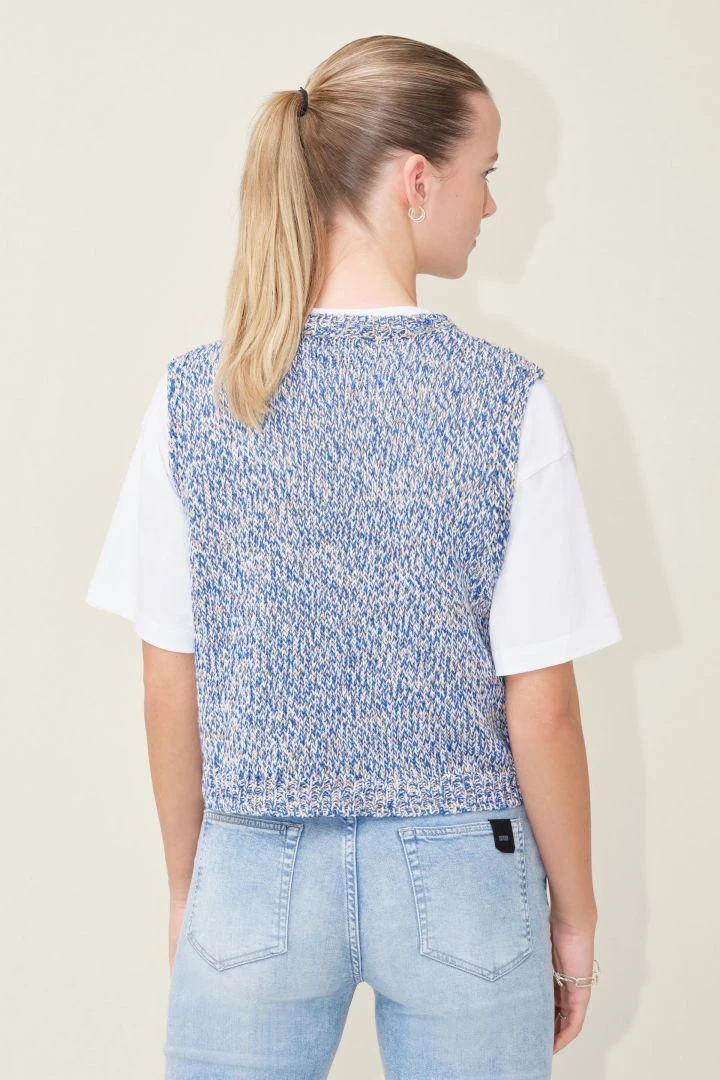 Der Pullunder kommt in feiner Cotton-Mouliné Qualität.