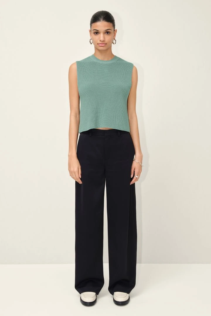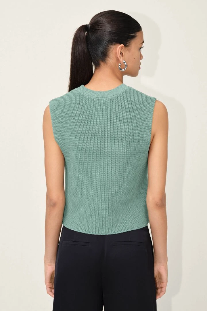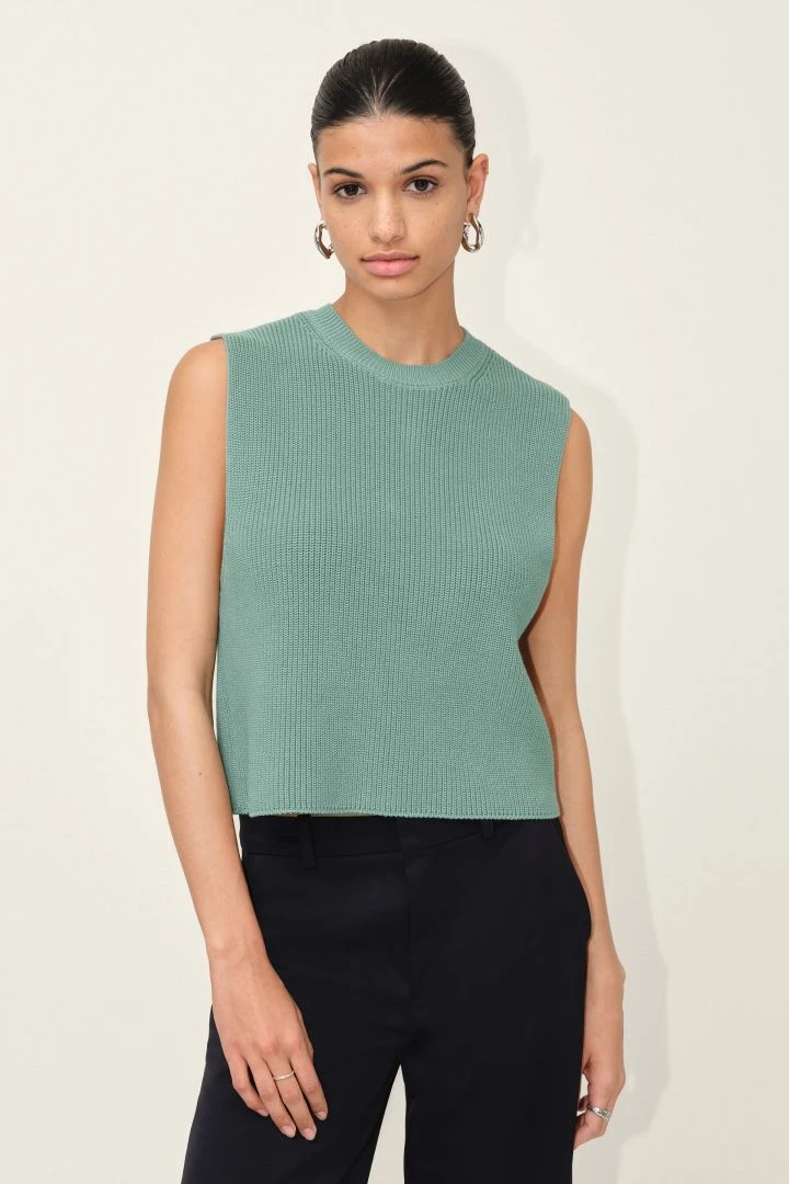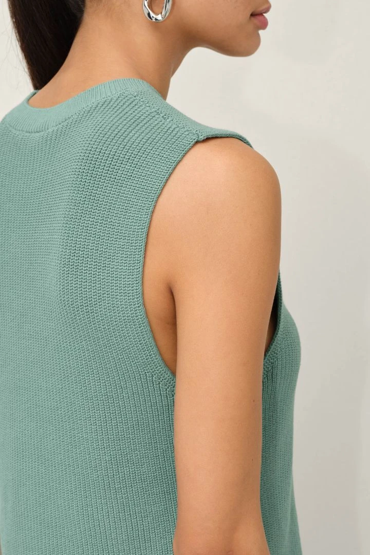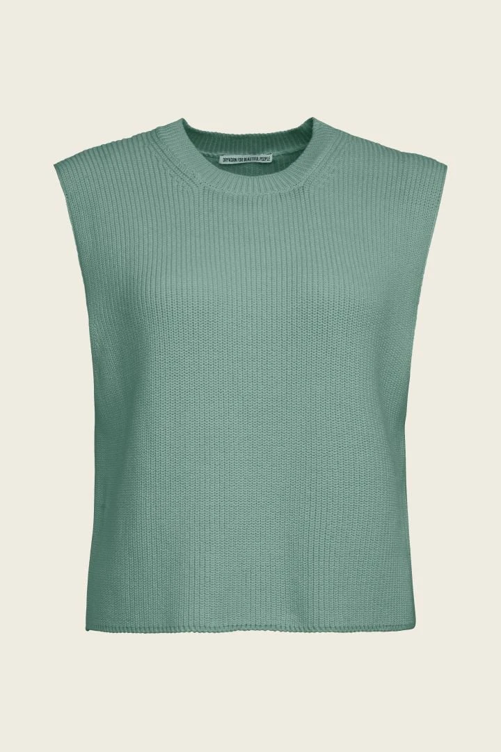 BERULA ist ein modisches ärmelloses Stricktop mit angedeutetem Turtle Neck.