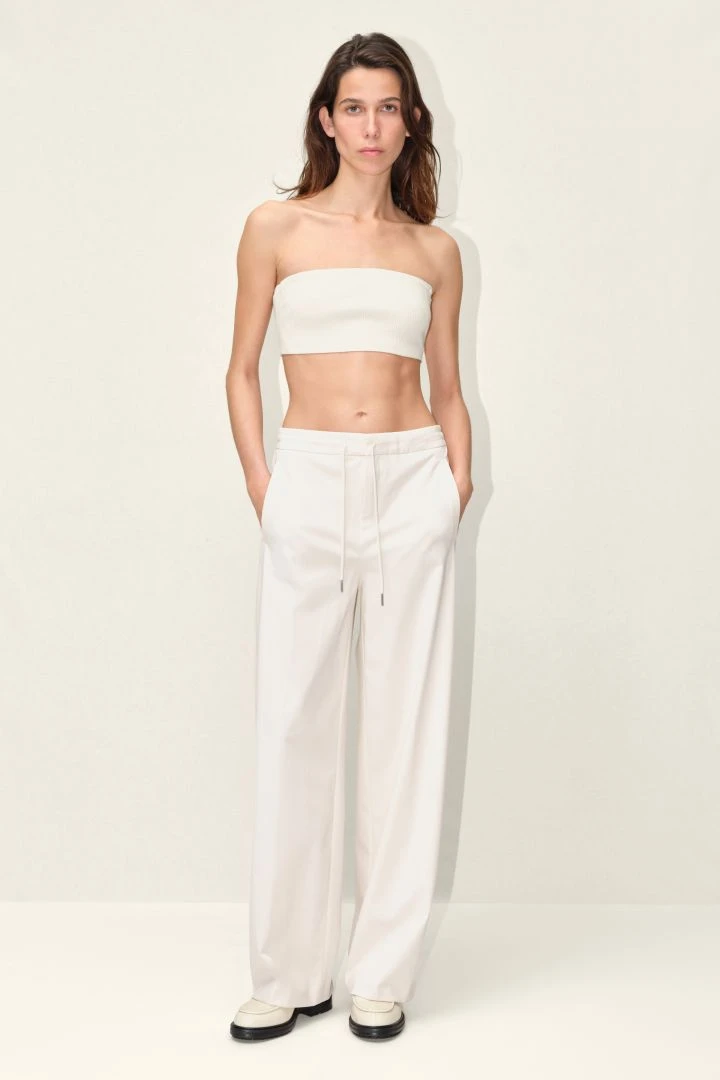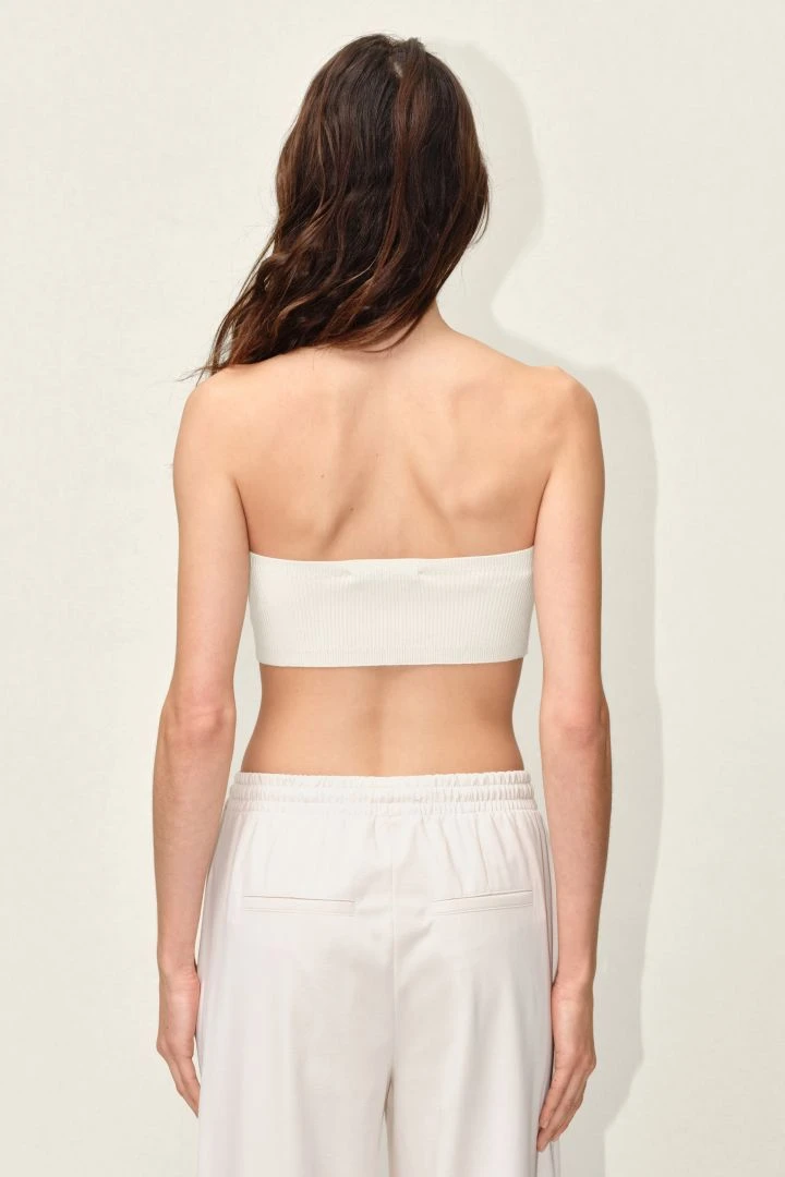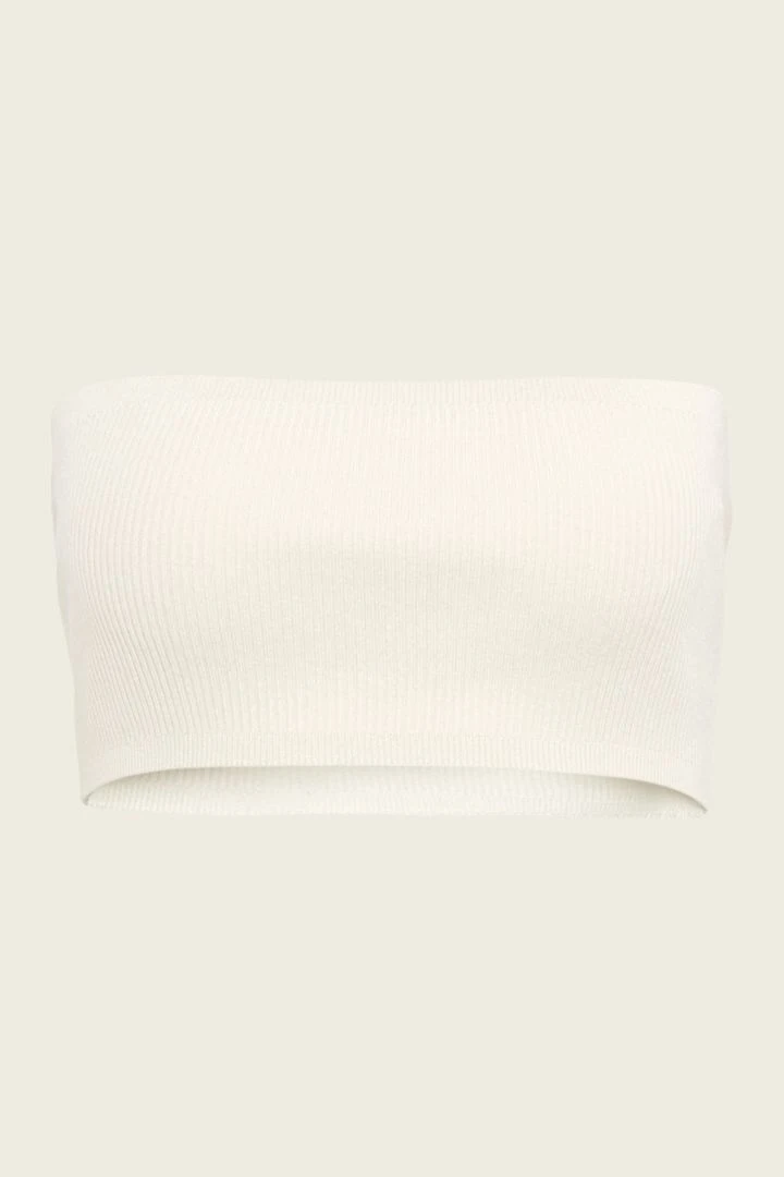 Das ärmellose Top DYRE ist trägerlos, kurz geschnitten und verfügt über einen geraden Ausschnitt. Es ist figurbetont und essenziell für den Sommer.