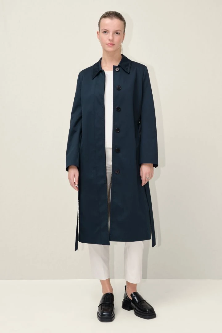 Das klassische Baumwoll Garbadine bekommt durch den Zusatz von Elasthan einen angenehmen Sitz.