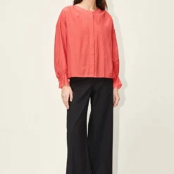 ALINUA ist eine feminine Shirt-Bluse mit Rückenschlitz und Rundhals.