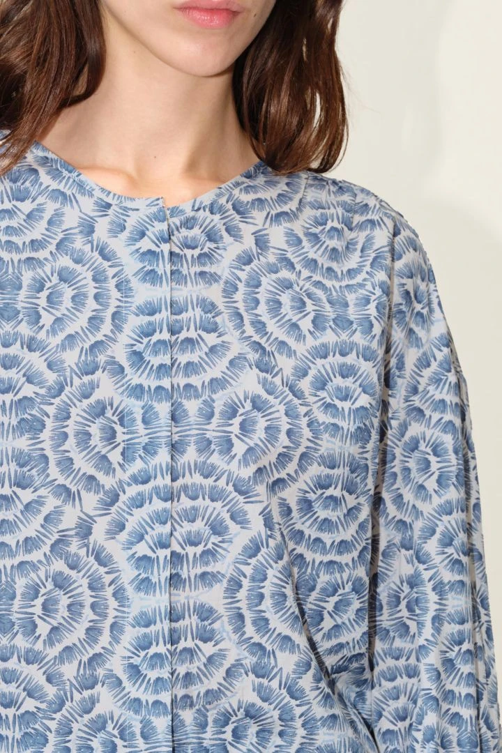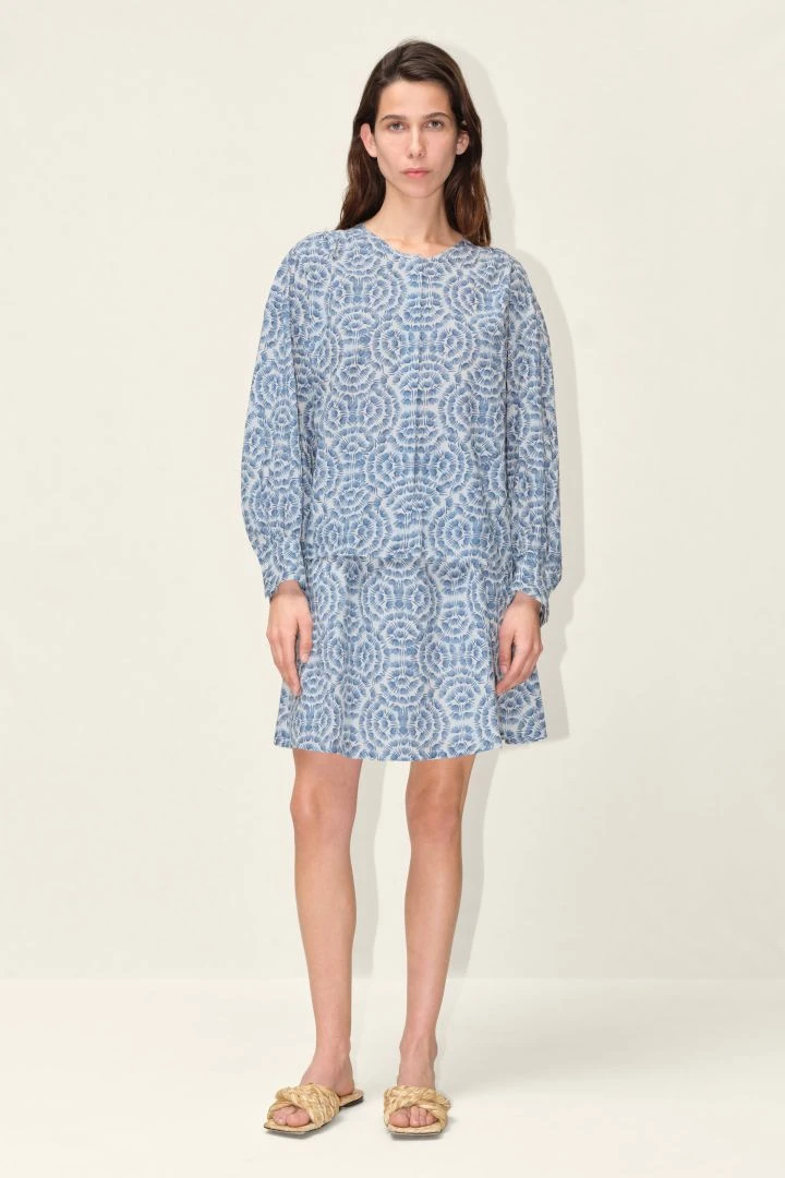 ITUA ist eine verkürzte Tunika mit Ballonärmeln und verdeckter Knopfleiste. Sie hat einen lockeren und leichten Fit, der zu Denim genauso gut wie zu einer eleganten Hose getragen werden kann.