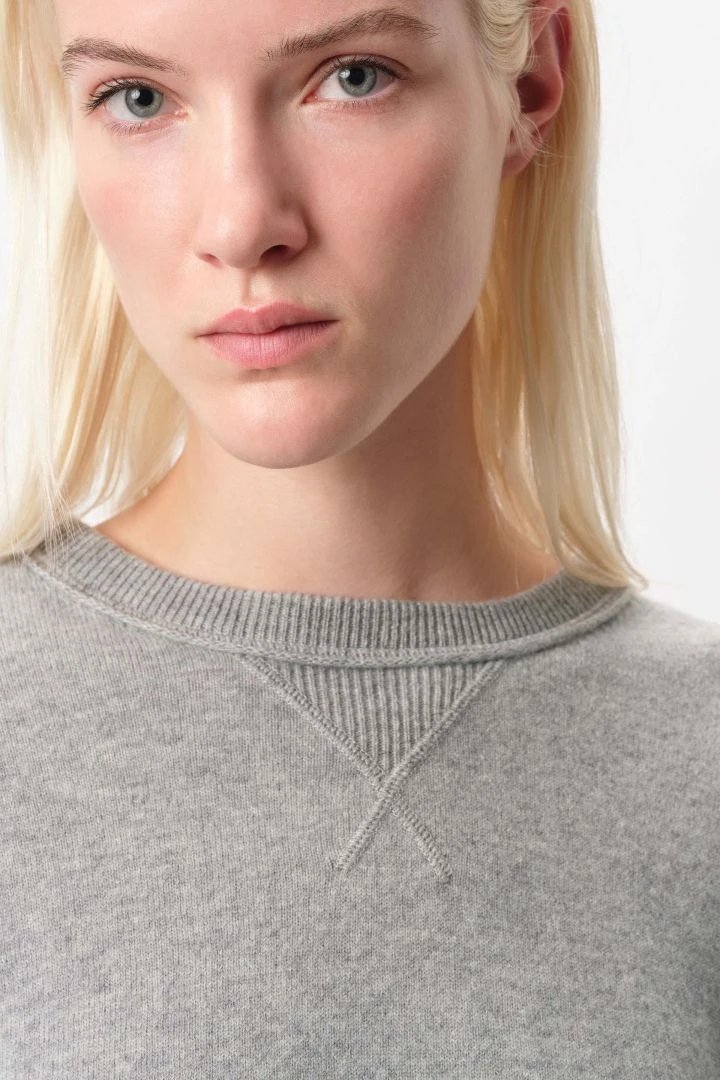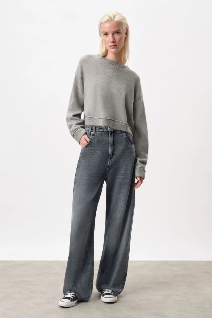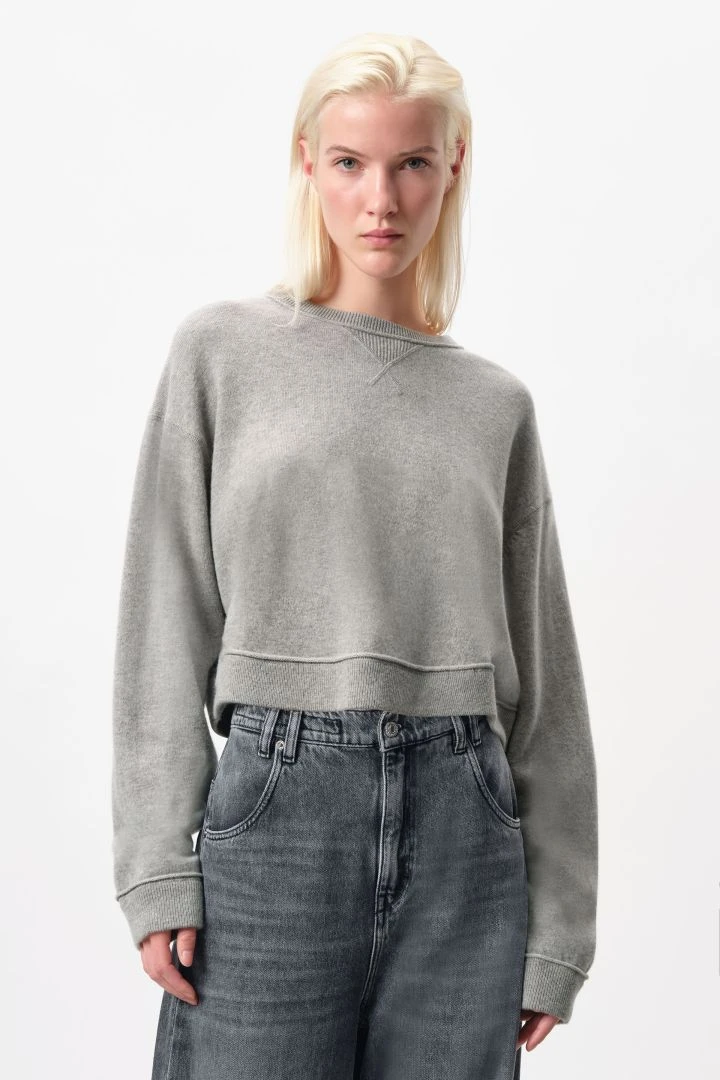 IMENY_2 ist ein verkürzter Pullover mit überlangen Ärmeln, der mit Rippbündchen an Saum, Ärmeln und am Ausschnitt versehen ist. Dies verleiht dem Pullover nicht nur eine sportliche Optik, sondern sorgt auch für eine bequeme und angenehme Passform. Der verkürzte Schnitt des Pullovers betont die Taille und verleiht dem Look einen modernen Look.