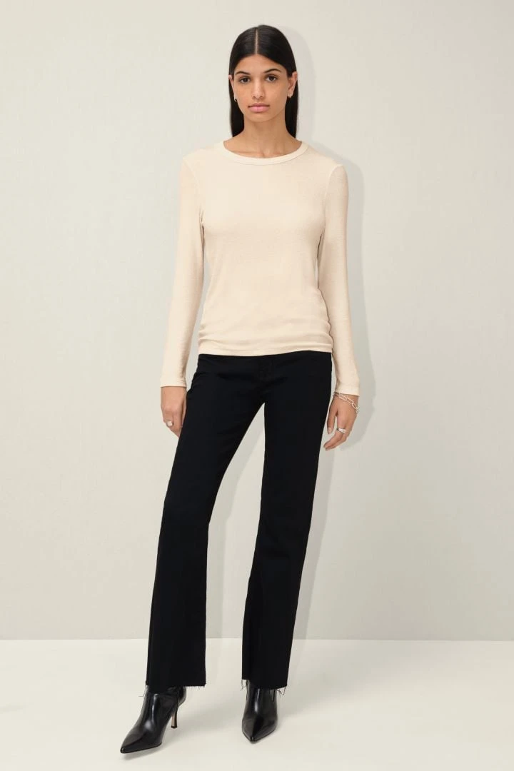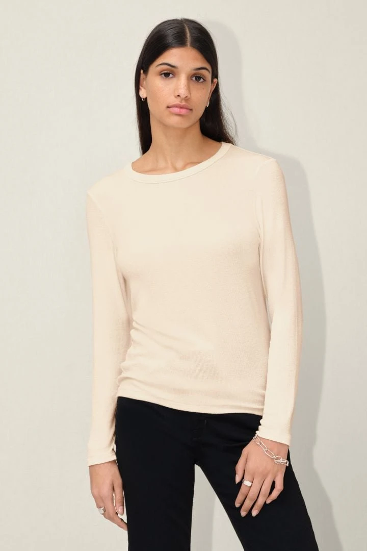 BAJARI ist ein tailliertes Rundhals Longsleeve mit feiner Rippenstruktur.