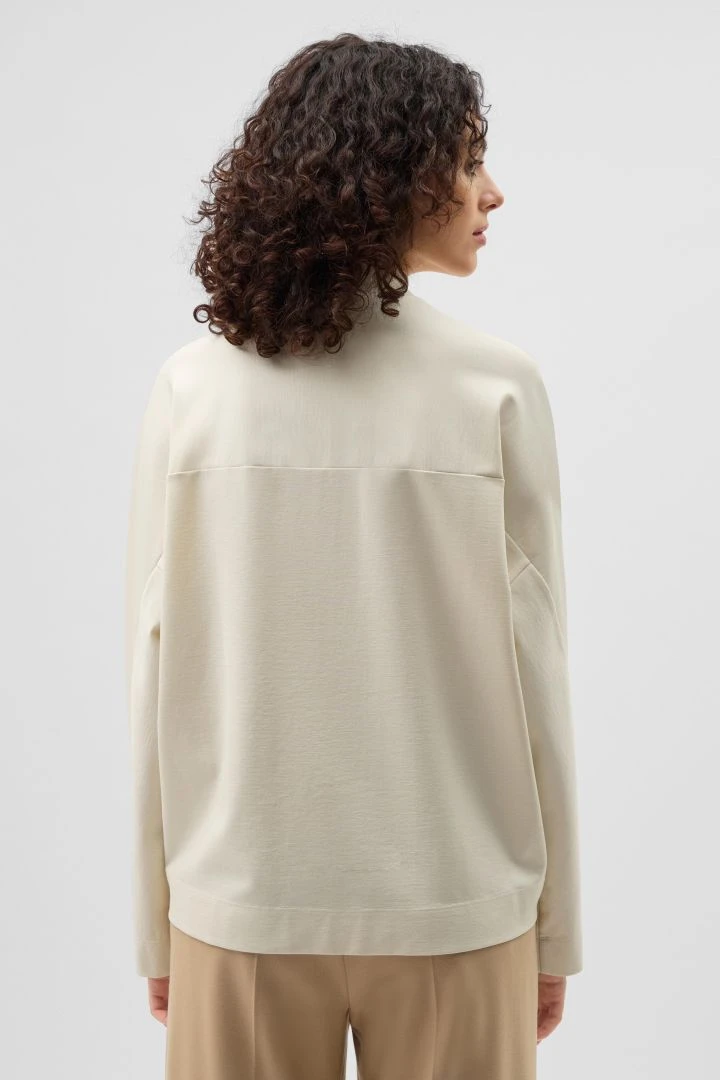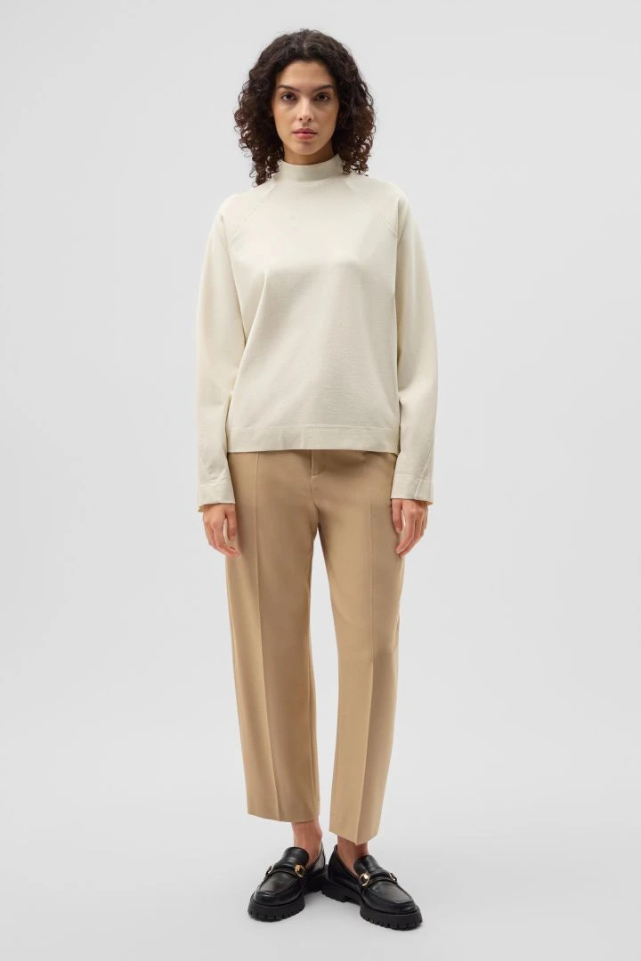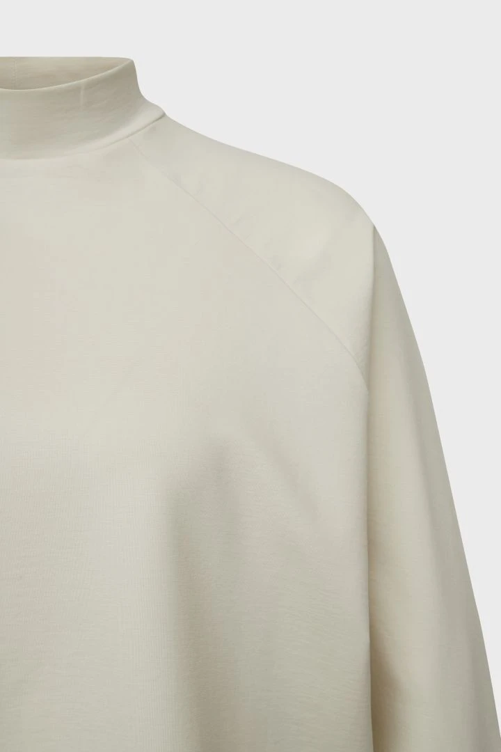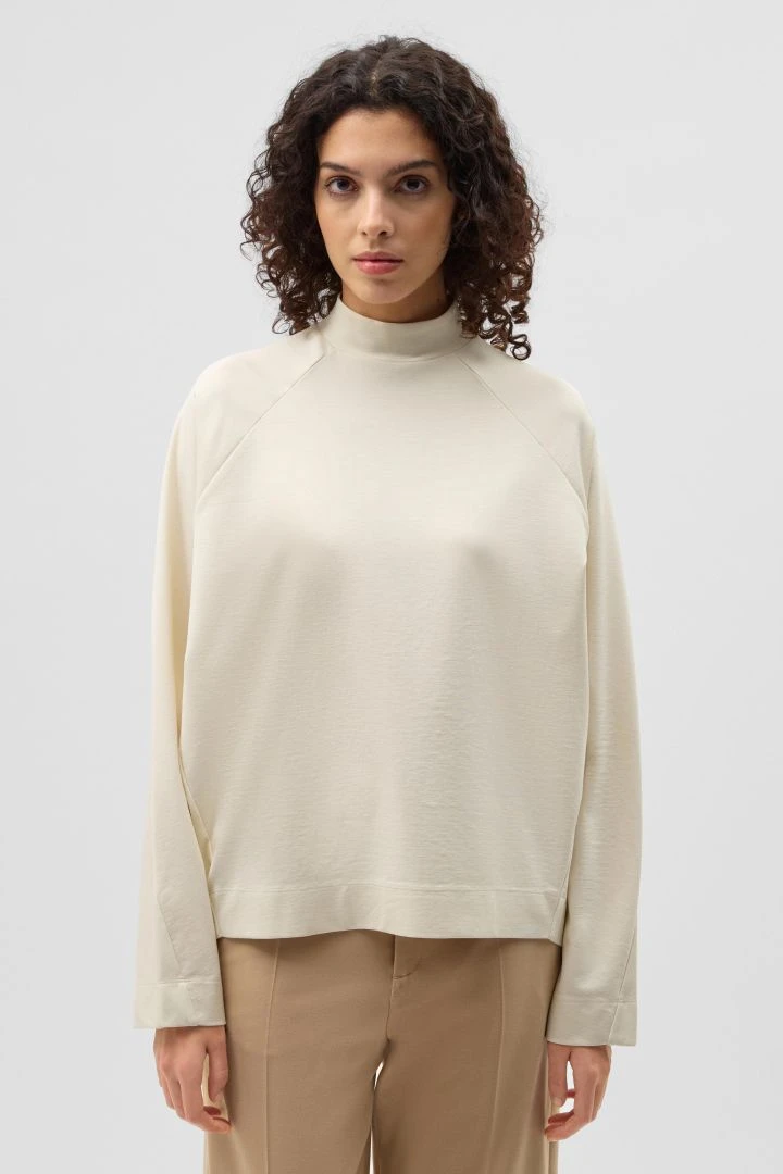 OWENNA ist ein leicht Oversized geschnittenes Sweatshirt mit Stehkragen. Es hat weite Ärmel und zeichnet sich durch besondere Tailoring Details wie den Raglan Ärmeln und einer schräg zulaufenden Naht am Ärmel aus.