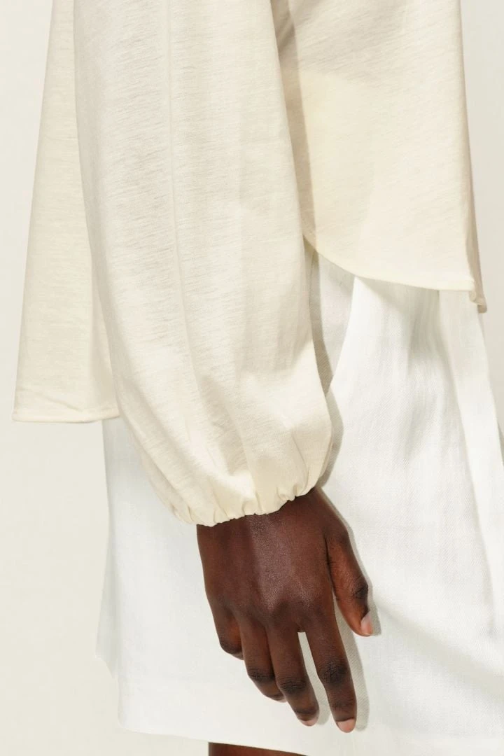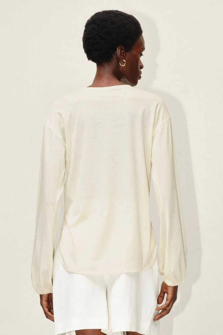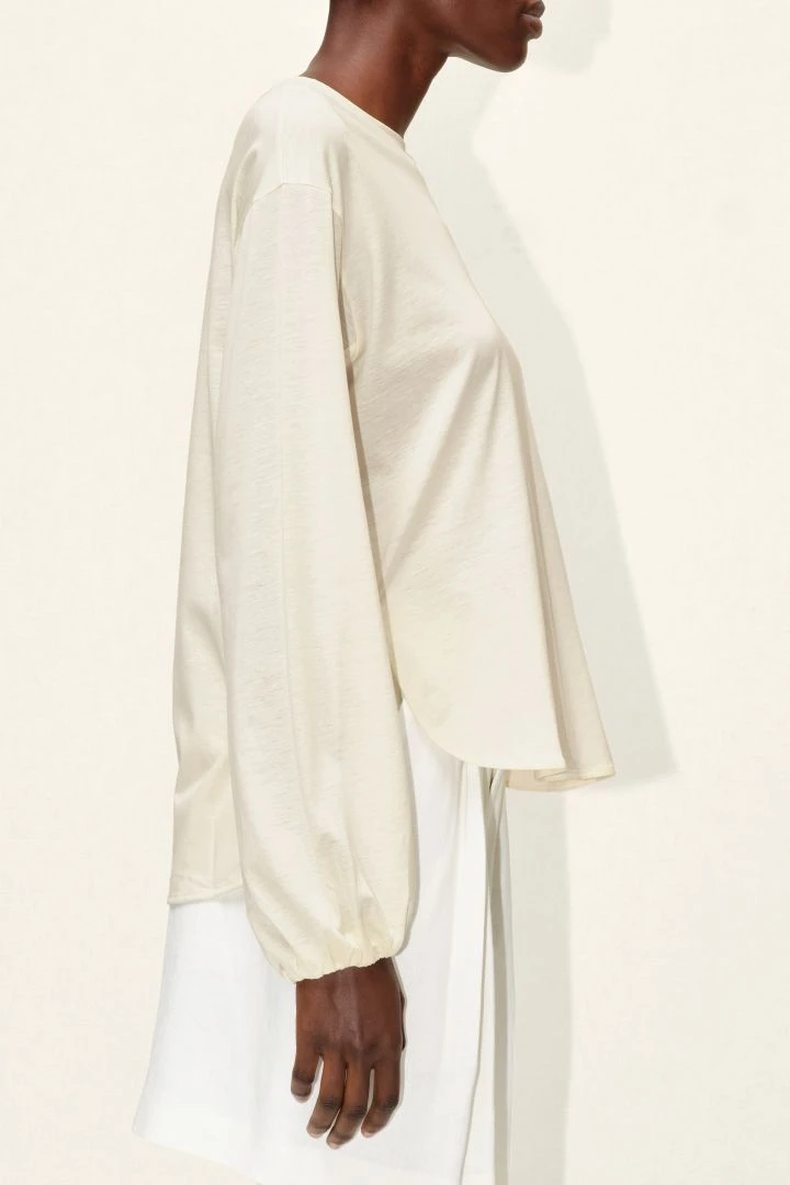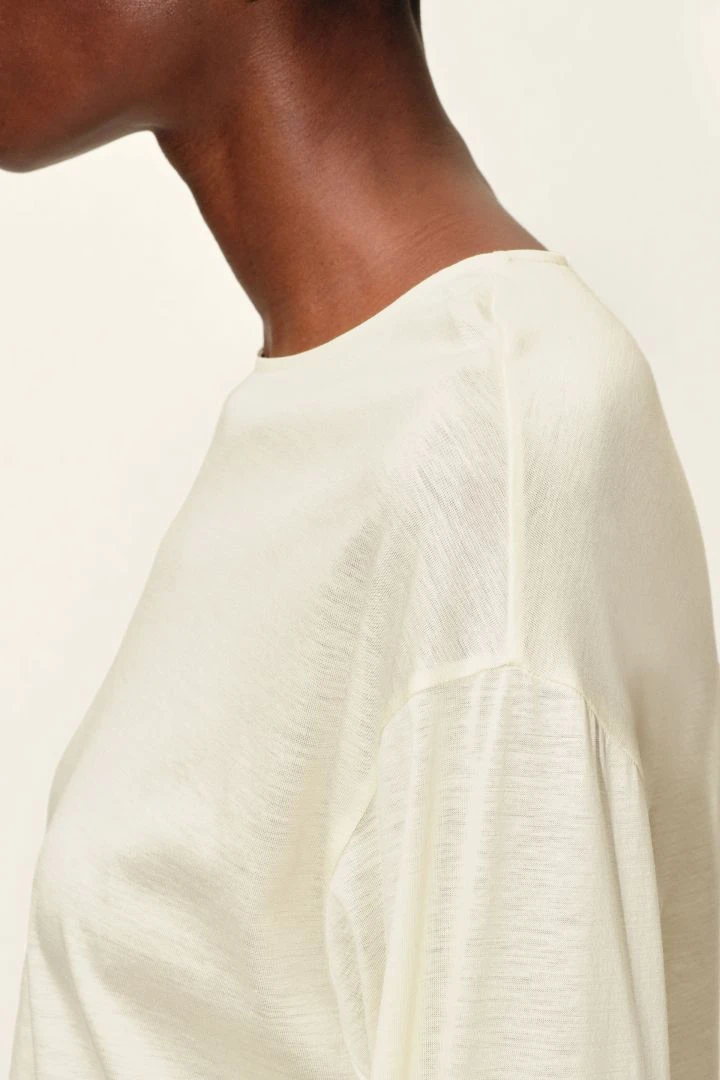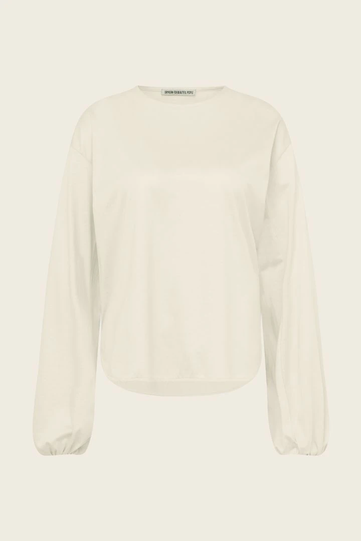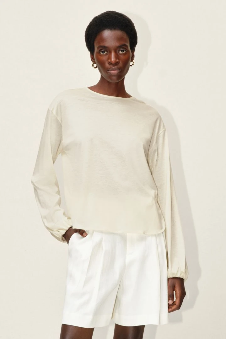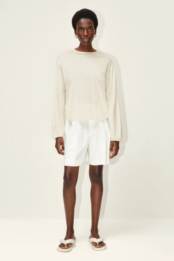 KJELLA ist ein verkürztes Langarm Shirt mit einem abgerundeten Saum. Der Oversize Fit und die Ballonärmel machen es zu einem modischen Basic für deinen Kleiderschrank.