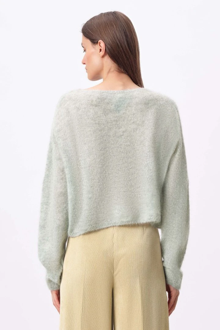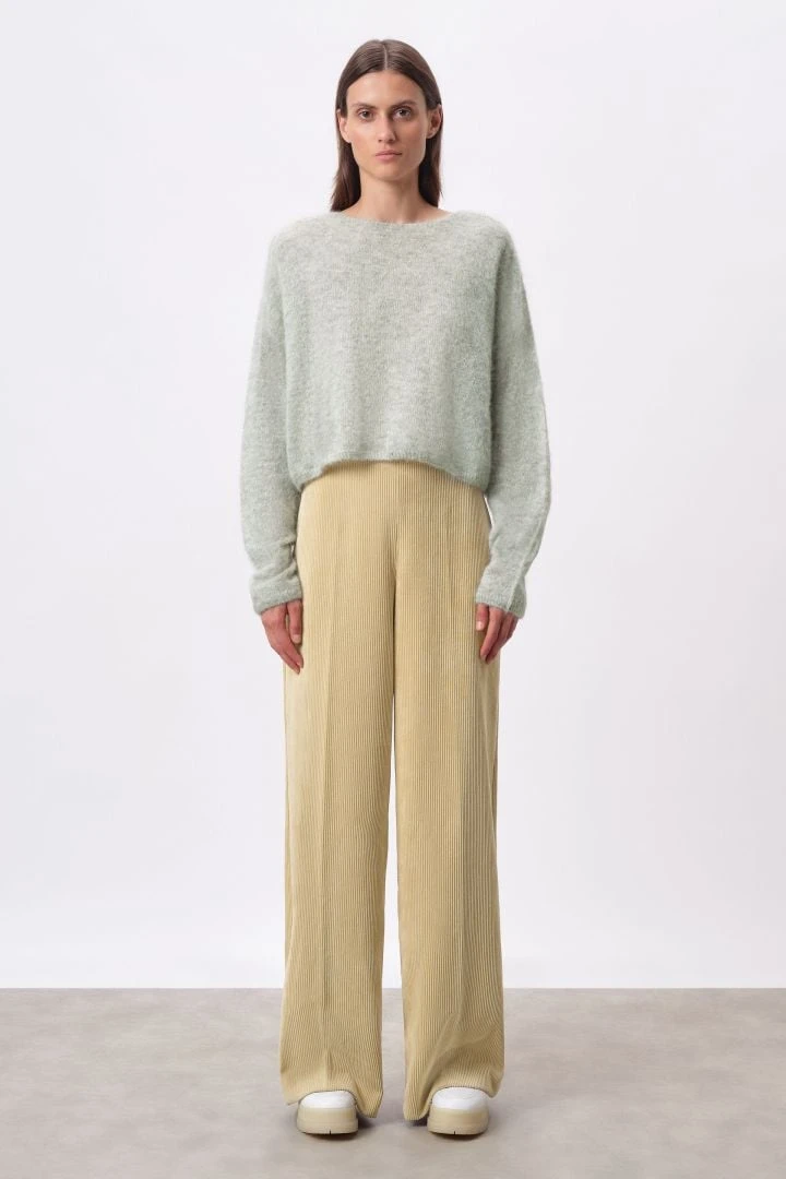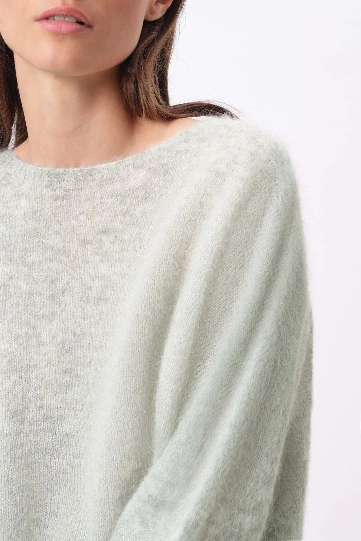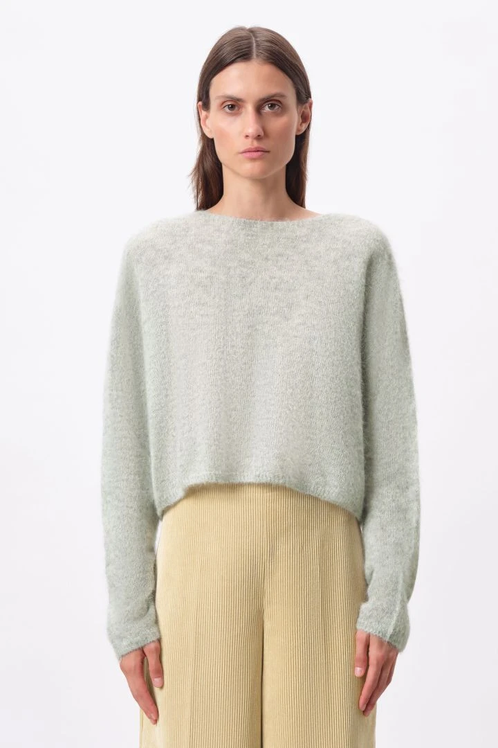 IMENY ist ein verkürzter Pullover mit überlangen Ärmeln. Der verkürzte Schnitt des Pullovers sorgt für eine moderne Silhouette und betont die Taille. Die überlangen Ärmel sind ein auffälliges Detail, das dem Pullover einen individuellen und modischen Touch verleiht.
